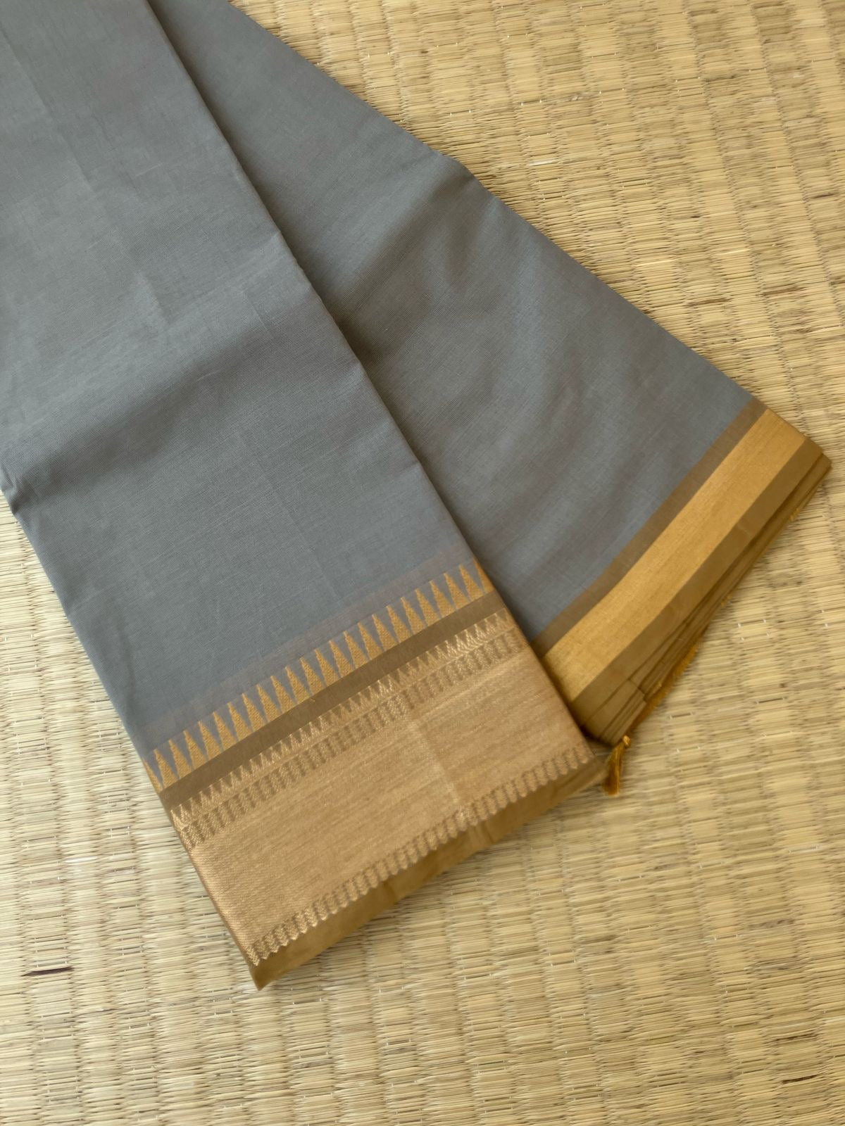 These saree comes with beautiful kanchivaram style gold/ Copper woven zari borders on chettinad cotton . With simple and elegant strips weaved pallu. These sarees are a fusion of Chettinad Cottons sarees with Kanchivaram style zari woven ganga jammuna borders