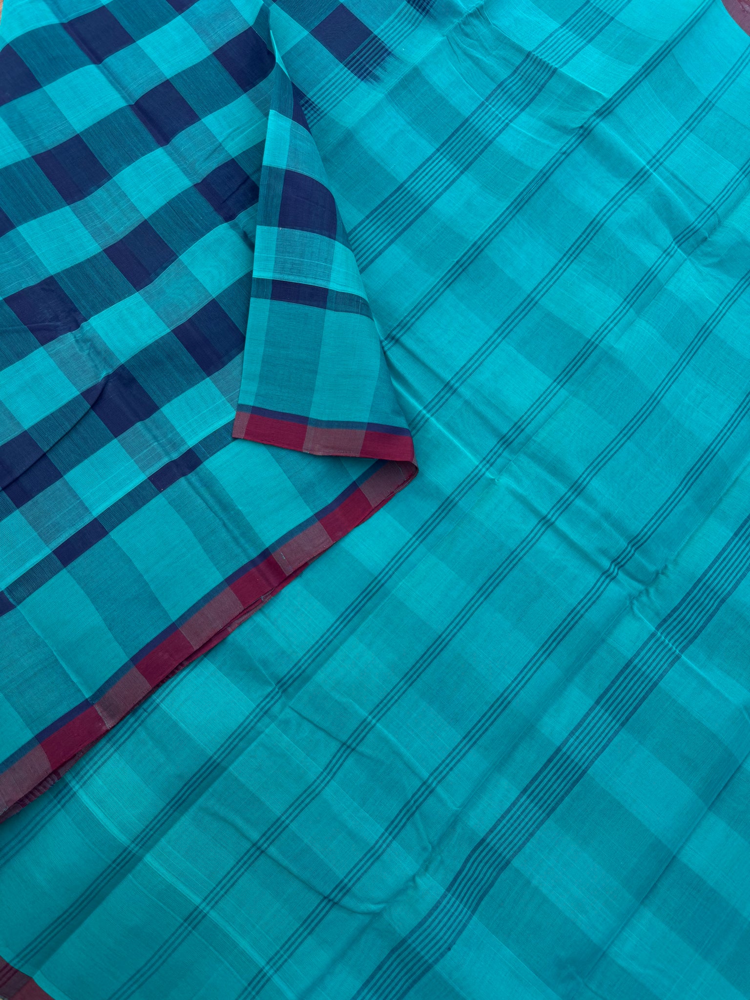 Pragatham - Contrast Play - blue and blue check with Chettinad vibes