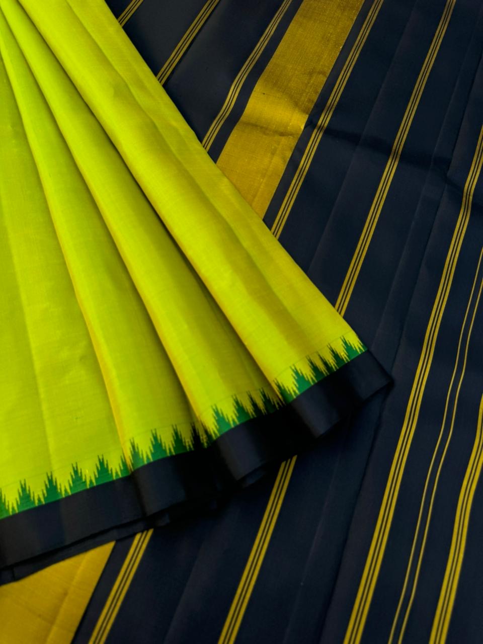 Recipe of Rarest Korvai Kanchivaram - a stunning freeh green body with one inch korvai black borders