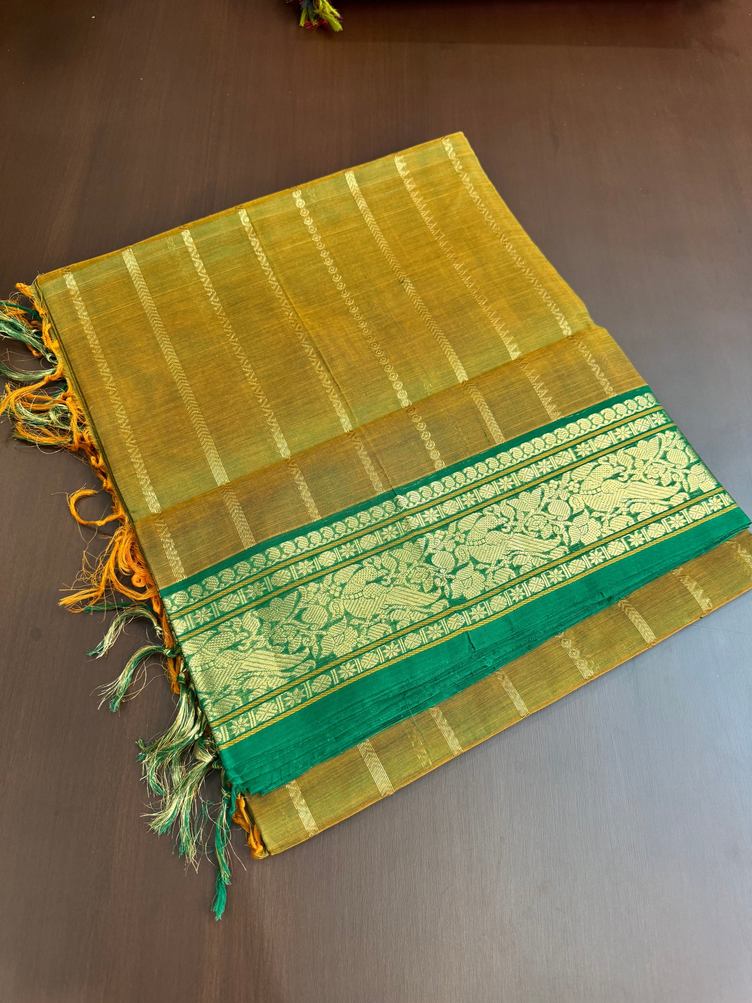Vertical Veldhari on Zari Kissed Silk Cotton - mustard mixed green in green