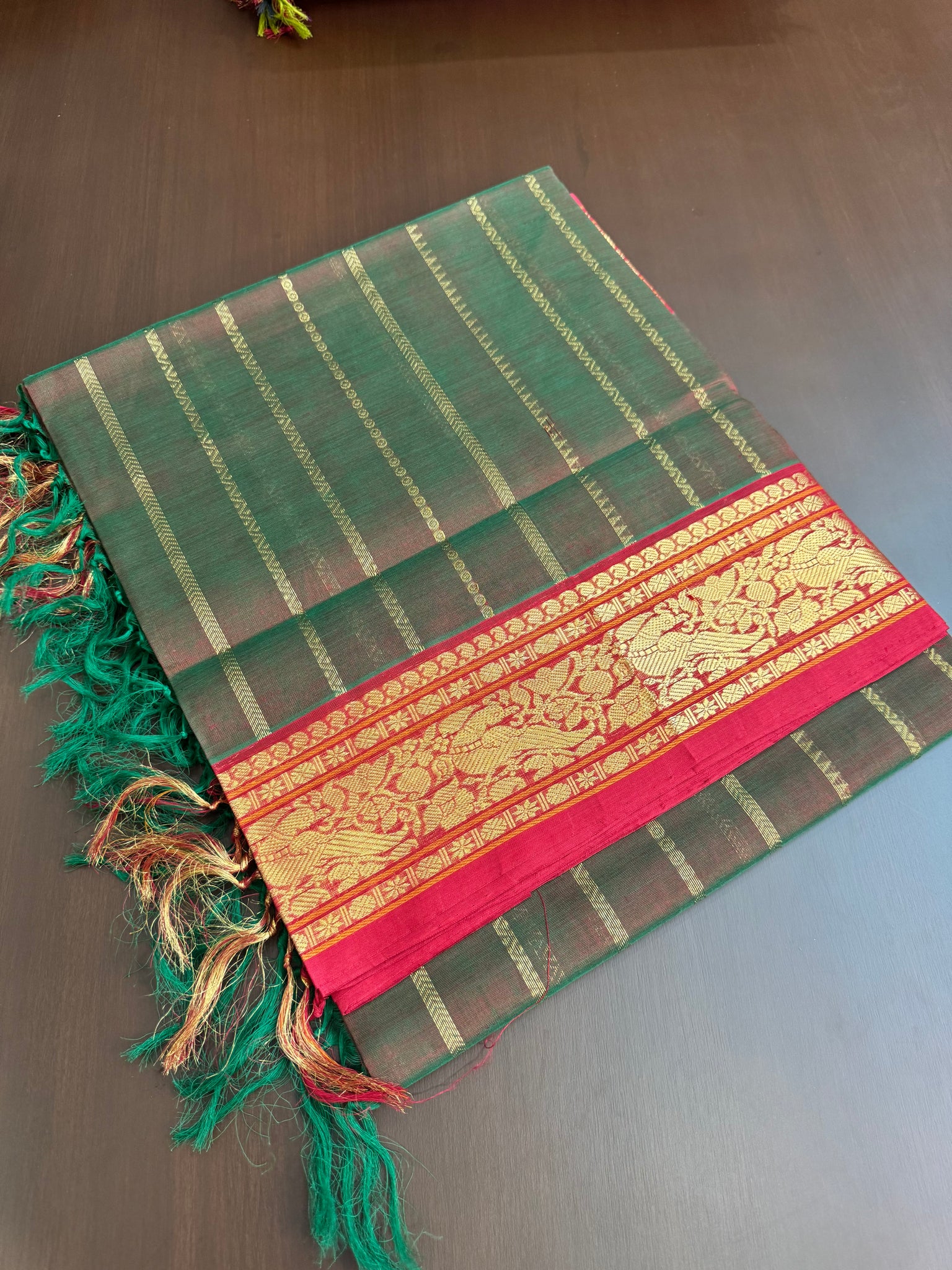 Vertical Veldhari on Zari Kissed Silk Cotton - a red mixed green dual tone