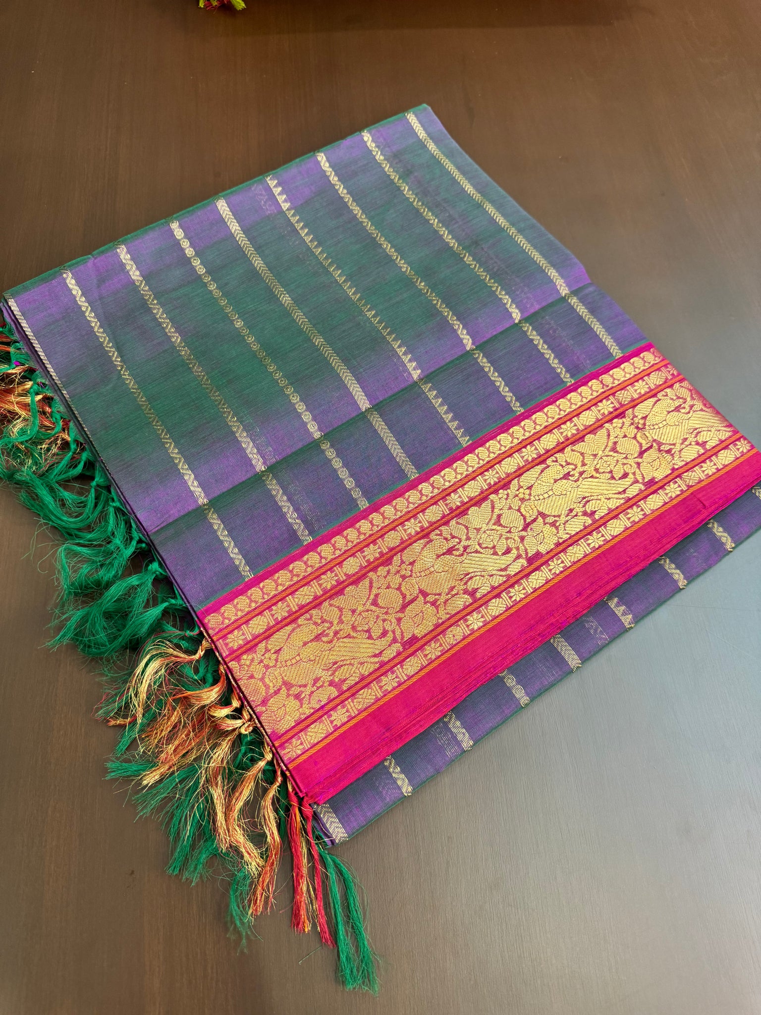 Vertical Veldhari on Zari Kissed Silk Cotton - green mixed violet dual tone