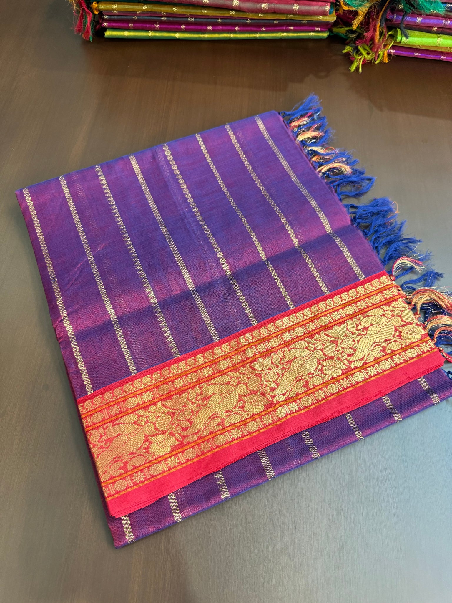 Vertical Veldhari on Zari Kissed Silk Cotton - blue mixed violet