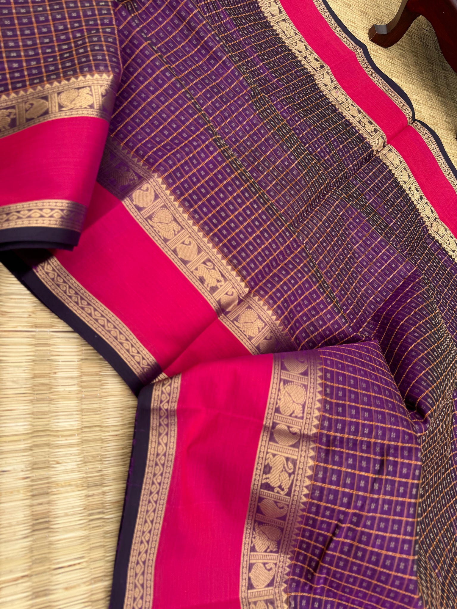 Yes the silk cotton from chettinad Handloom is a perfect blend of pure silk yarn with pure cotton yarn on 60(Silk) : 40(cotton) ratio. These sarees pure silk by cottons woven with traditional motifs of yali, annapakshi, elephants, peacocks, rudurakasham motifs.