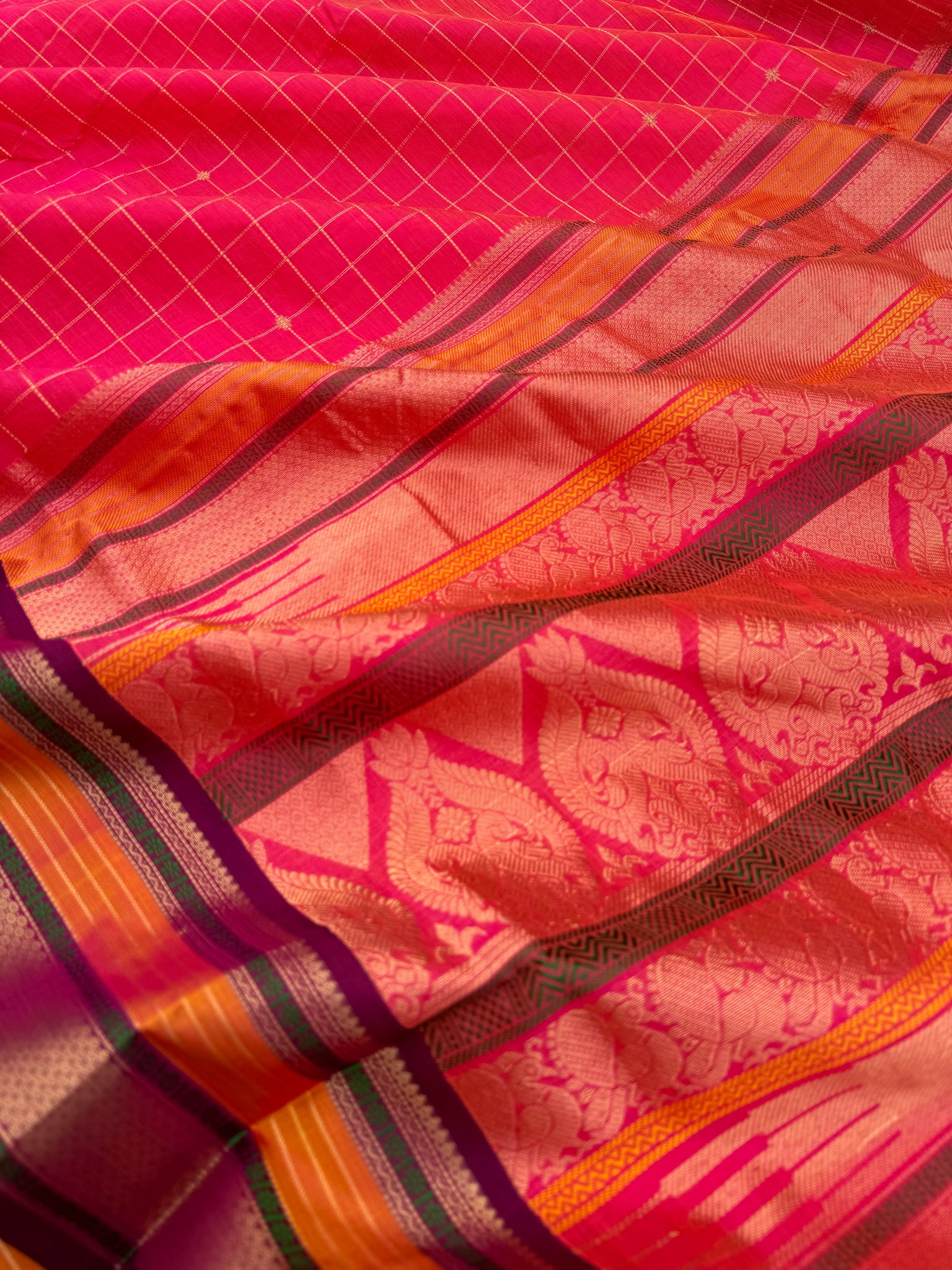 Zari Kissed Silk Cotton - orange mixed pink with muthu koortha kattam buttas