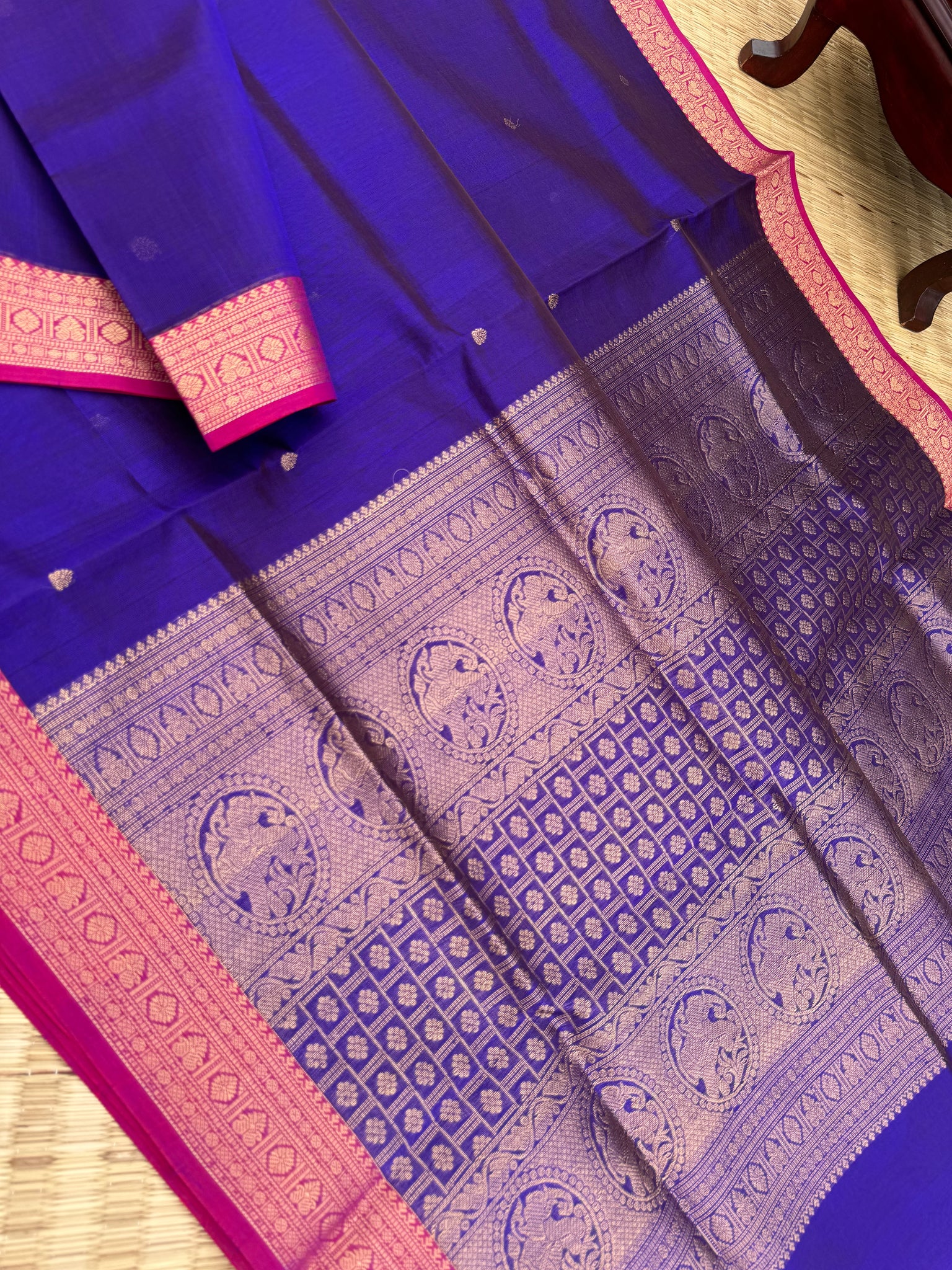 Zari Kissed Silk Cotton - dark deep violet for people who love small borders