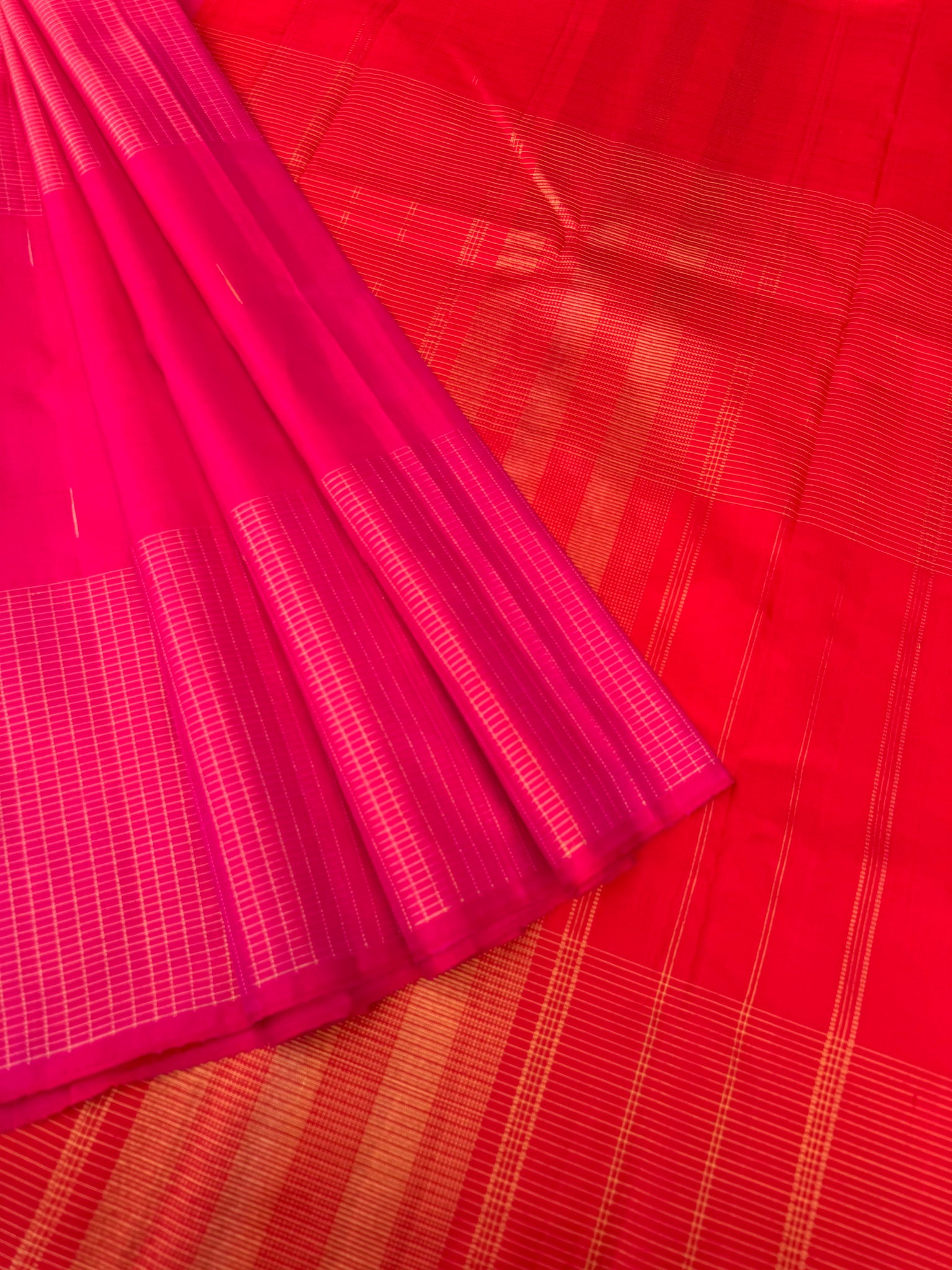 Aadthyayam – The Everyday Kanchivaram - a stunning pink body with red pallu and blouse