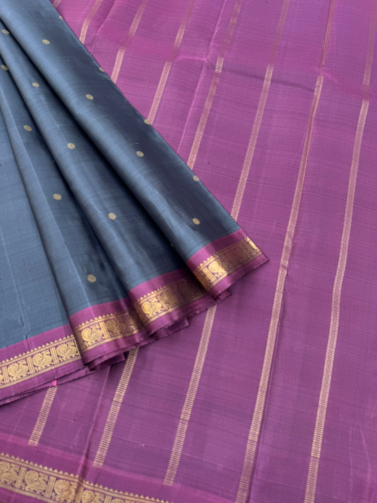 Leela - The bliss of small border Kanchivarams - Simple at the best a deep dark grey