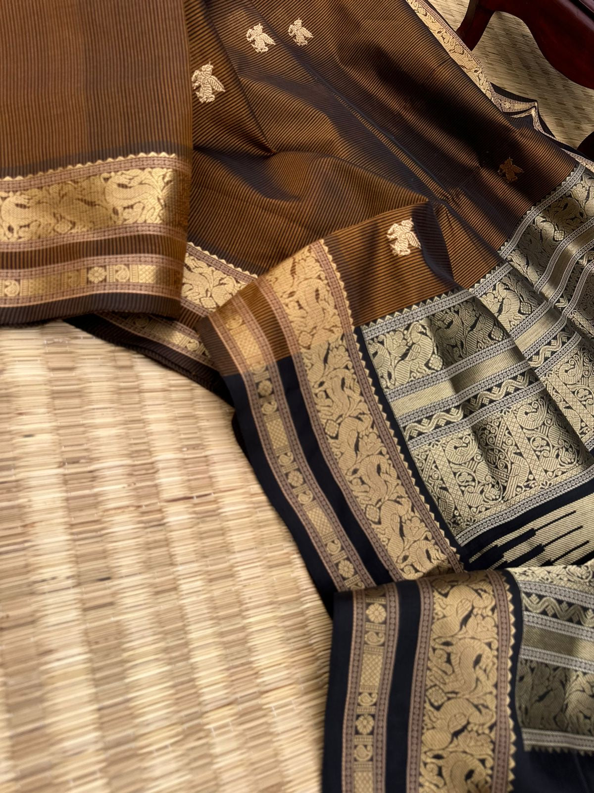Zari Kissed Silk Cotton - deep dark black and bronze